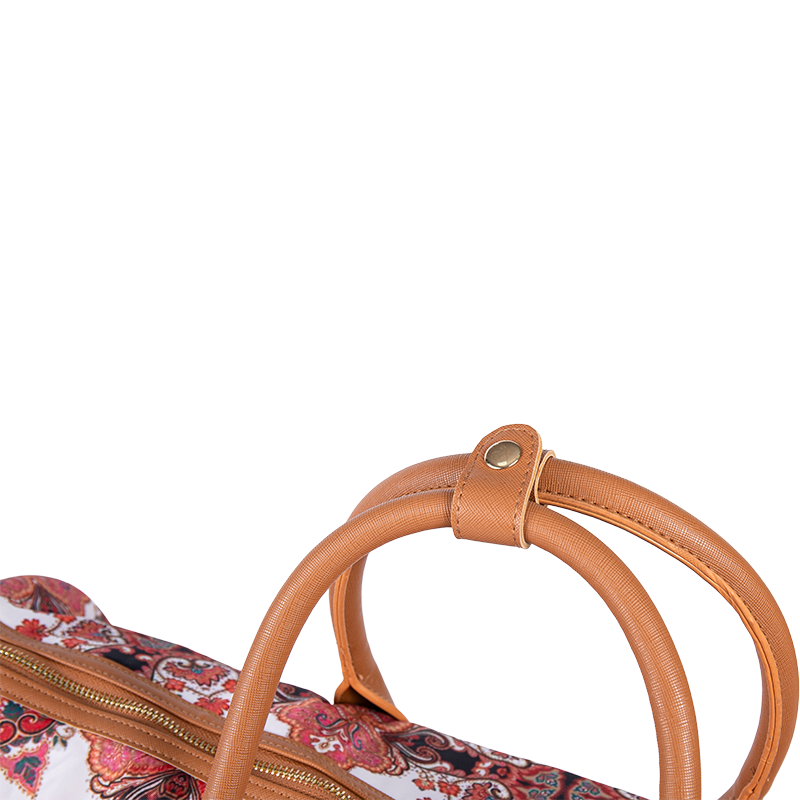 Hoc sacculum features intricate vestigia quod miscetis vindemiam tropical exemplaria cum ICONICUS Southeast Asian elementa, ut monogramram flores. Et Naturalis Cowhide trims addere Retro tactu ad style.